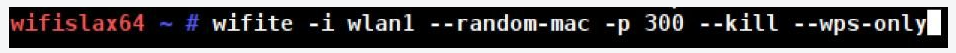 wifite -i wlan1 --kill --random-mac -p 100 --wps-only
