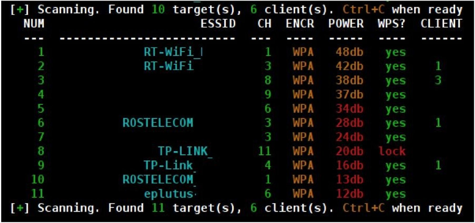 После этой команды скрипт начнет искать жертв согласно нашим условиям и попытается провести несколько атак на каждую, но по очереди. Сначала будет Pixie-Dust - занимает около 5 минут, если не выйдет - попробует подобрать пин от впс перебором всех возможных комбинаций. Вторая атака может занимать от 15 минут и до 8 часов, но скорее всего роутер заблокирует WPS и скрипт пойдет дальше. В случае успеха в папке root будет создан текстовый файл cracked в который запишутся все данные которые удалось раздобыть. Посмотреть его можно открыв текстовый файл или написав в терминале «wifite -cracked». Субъективно - не очень понравилось, как он работает. Скрипт не прекращает работу после блокировки WPS роутером и долбится в него пока не закончится счетчик. Первым способом (через винду) все делается быстрее и перебор пинов идет не всех подряд, а самых вероятных.