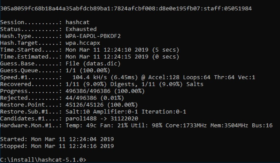 hashcat64.exe -а 0 -т 2500 all.hccapx insidePRO_WPA.txt