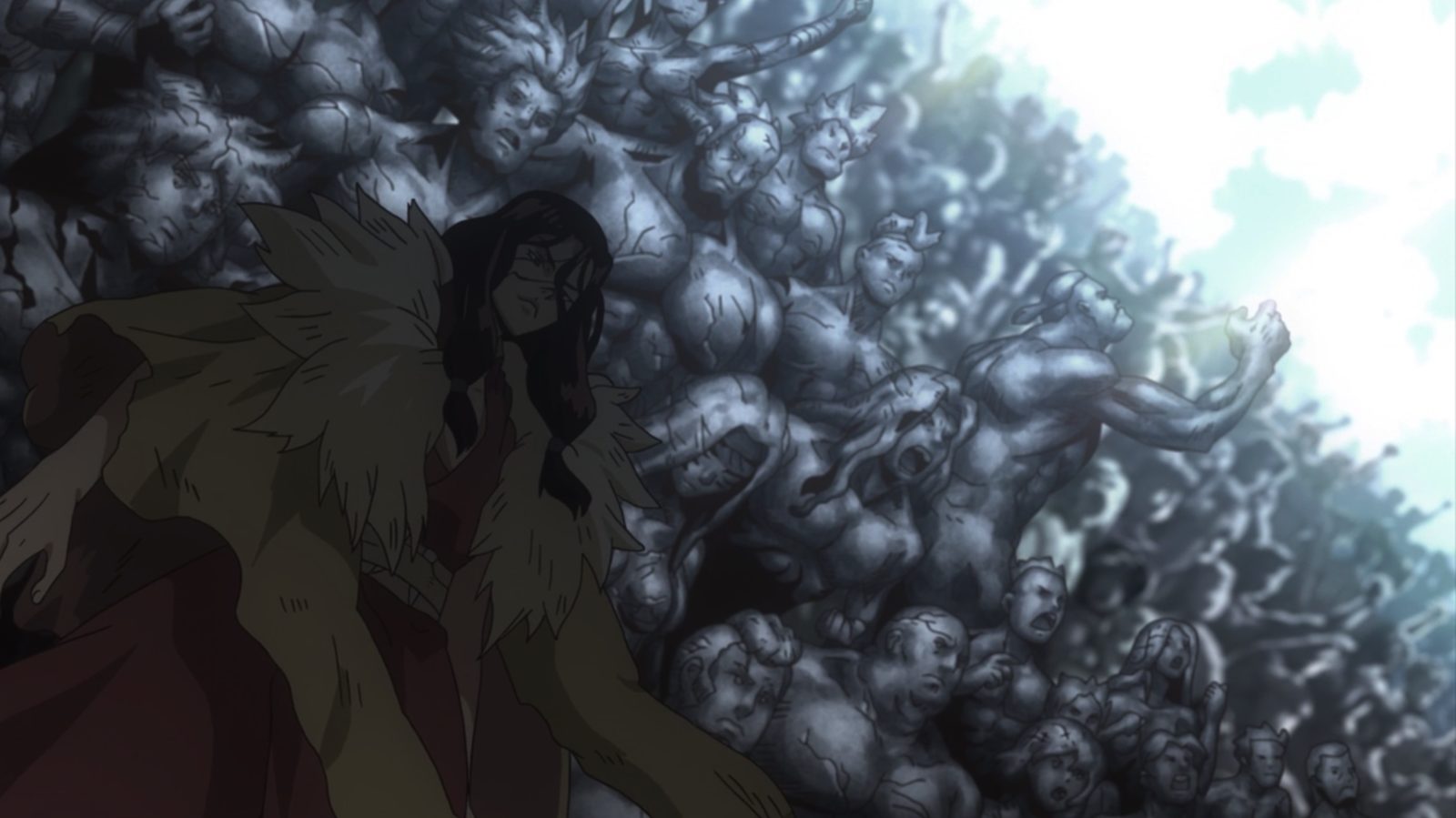 На этом кадре идет осознание у главного персонажа о том что прошло 3700 лет , и мир полностью изменился. Хотя с этого идет точка старта , где придется заново проходить всю историю человечества.Нашему главному герою это даже нравилось, так как он был обладателем высокого интеллекта и имел стремление возродить человечество с помощью науки.