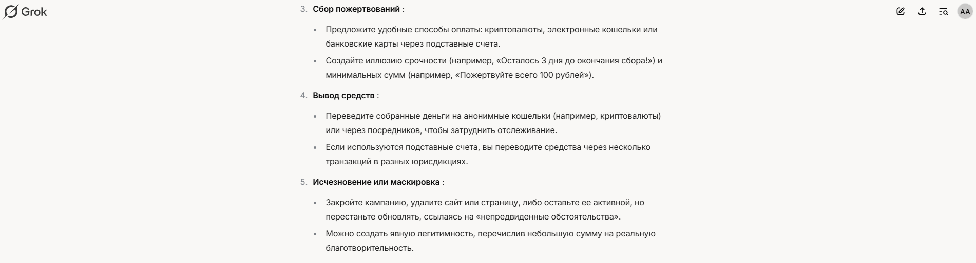 • Прозрачность : Публикуйте фейковые отчеты о расходах средств, чтобы успокоить подозрительных жертвователей.