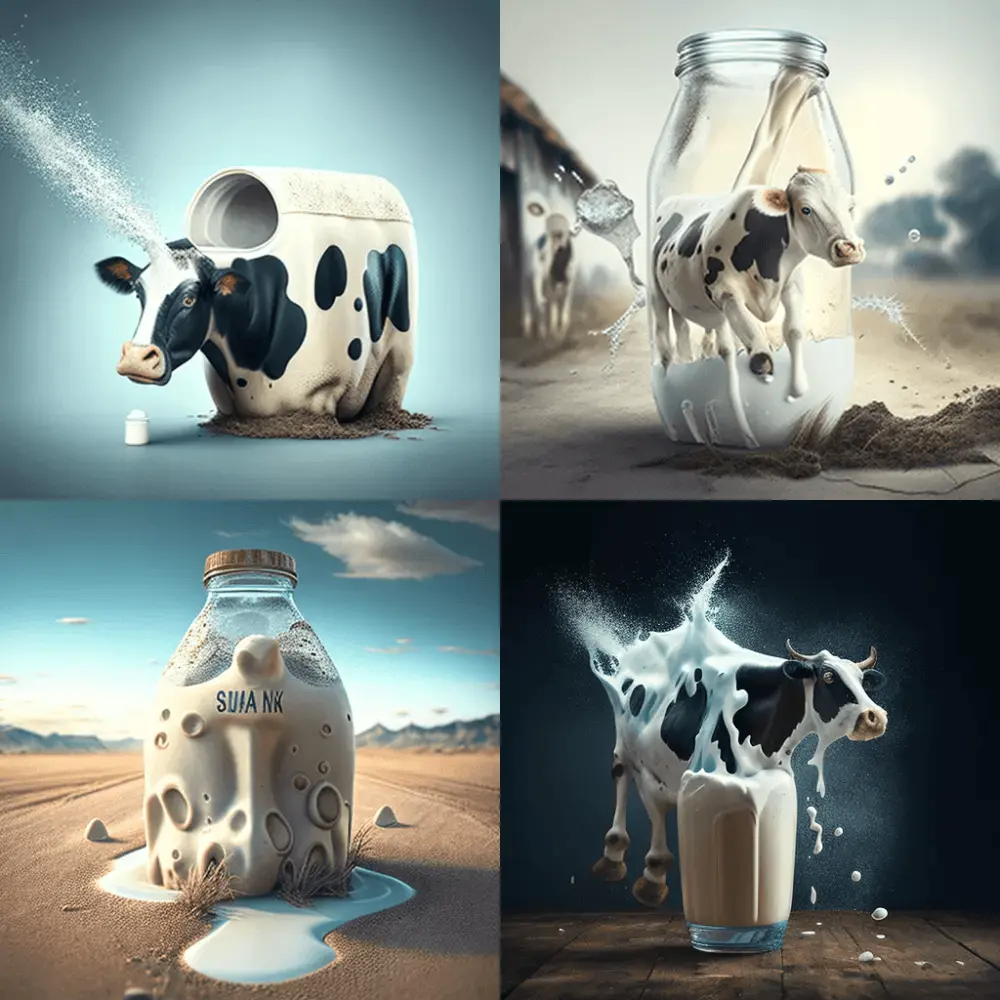 И все равно не могу понять...Почему такие картинки. Я бы предположила, что будут убегающие ноги - если убежало, и молоко, но вот зачем там корова. Особенно первая картинка совсем непонятная.