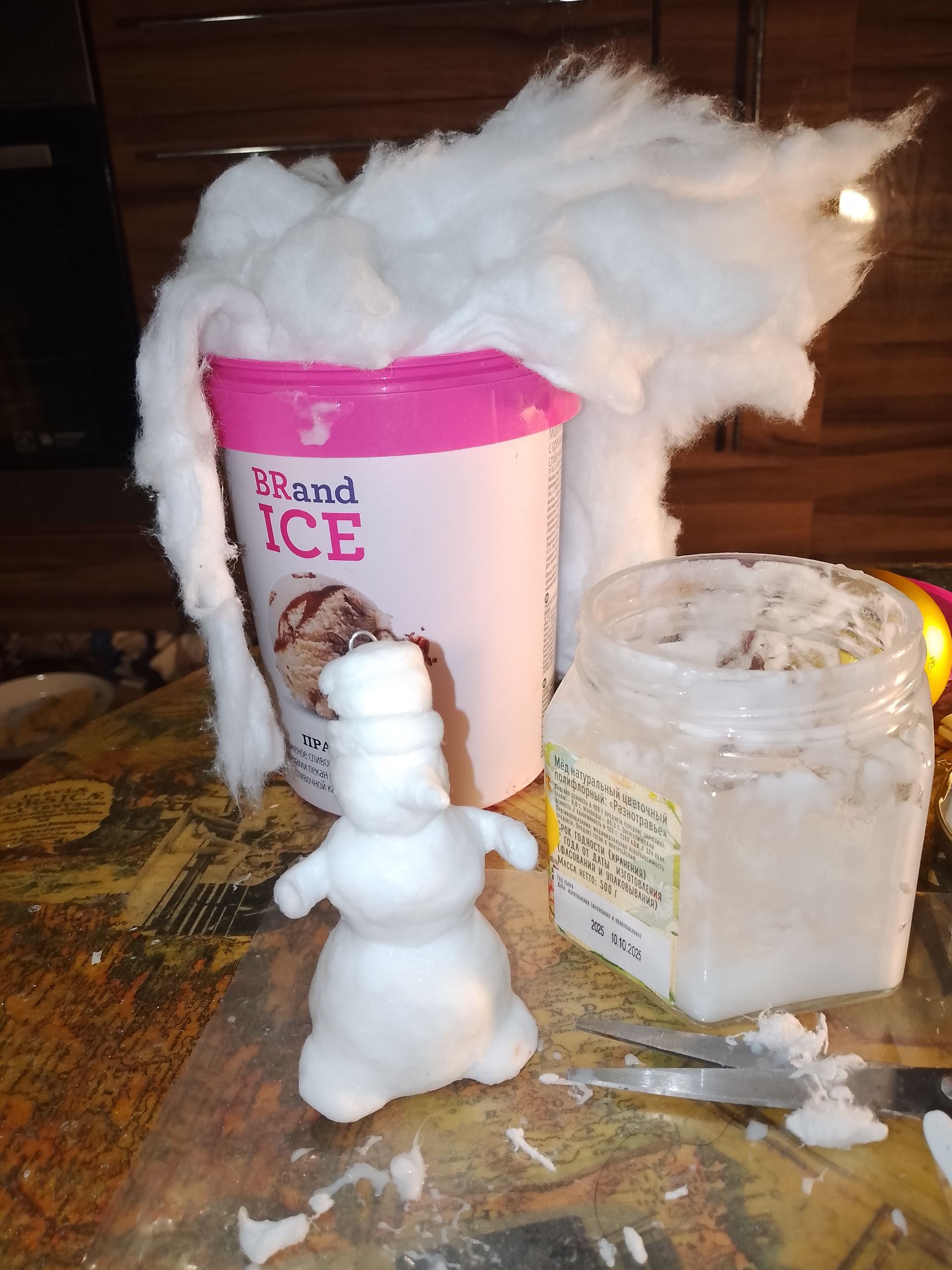 Здравствуйте ! Увидела конкурс и решила принять участие ...Но так как я живу в Сочи а снег только в красной поляне сделала его из ваты! раскрасила его акриловыми красками !