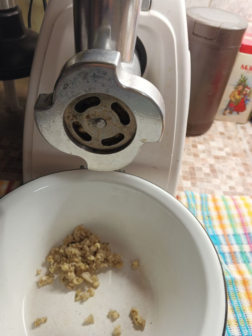 Вешенки пропукаем через мясорубку на средне-крупной решётке