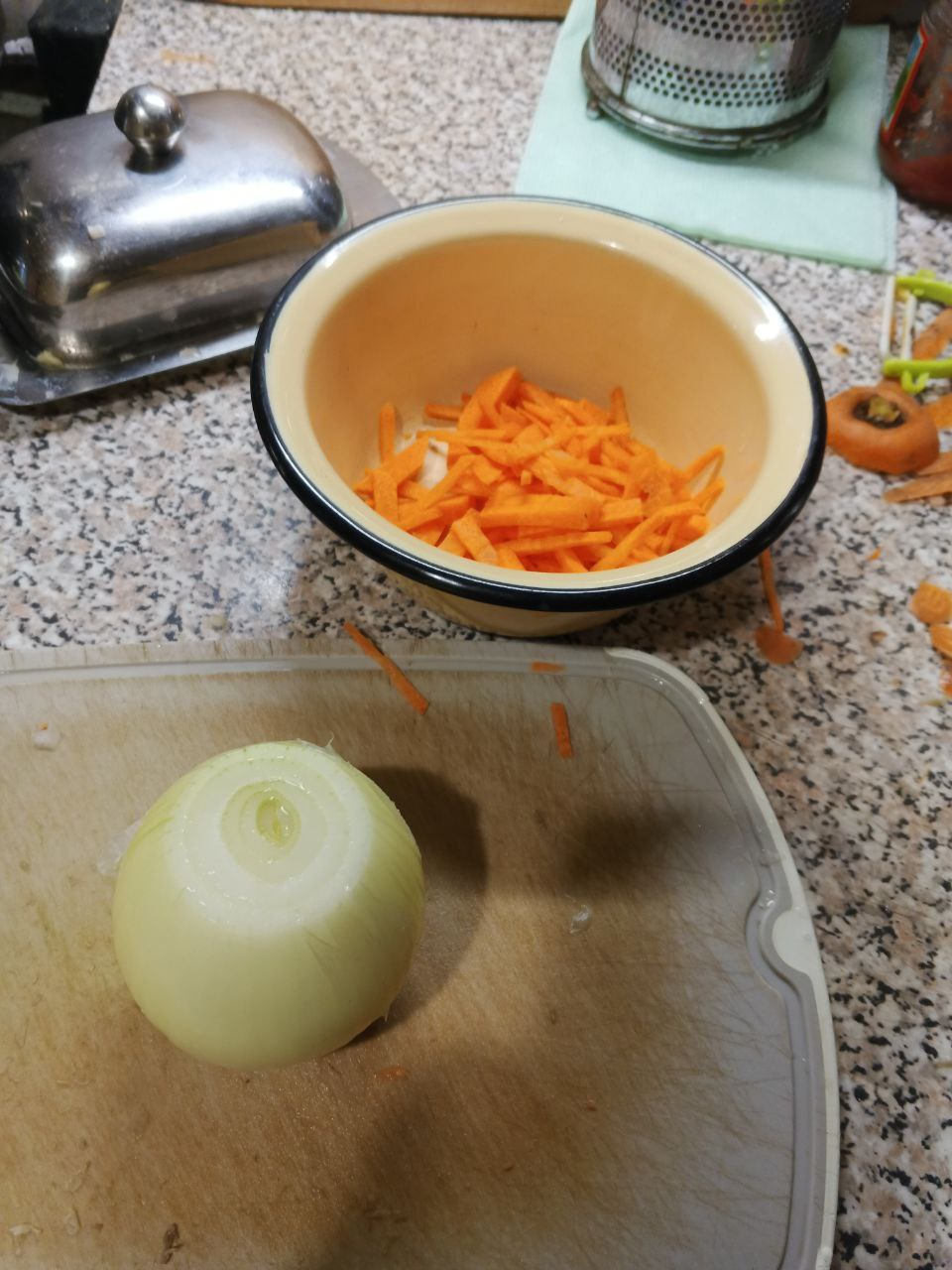 Все овощи сразу обжариваем на оливковом (растительном) масле
