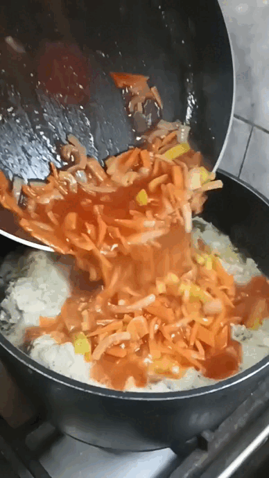 Добавляем томатную пасту и немного бульона, даём немного потушиться