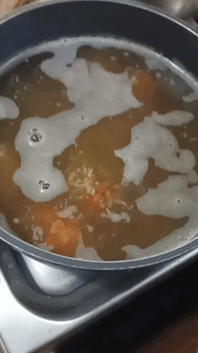 Овощи и рис выкладываем в касу и заливаем бульоном